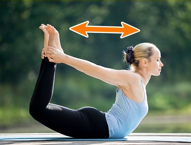 Lie on your stomach and pull your arms forward. Bend your back and lift your head, arms, and legs up at the same time. Grab your ankles and inhale deeply. Stay in this position for a few seconds. Then exhale, while relaxing the muscles and return to the starting position. Perform 1 set of 60 seconds.