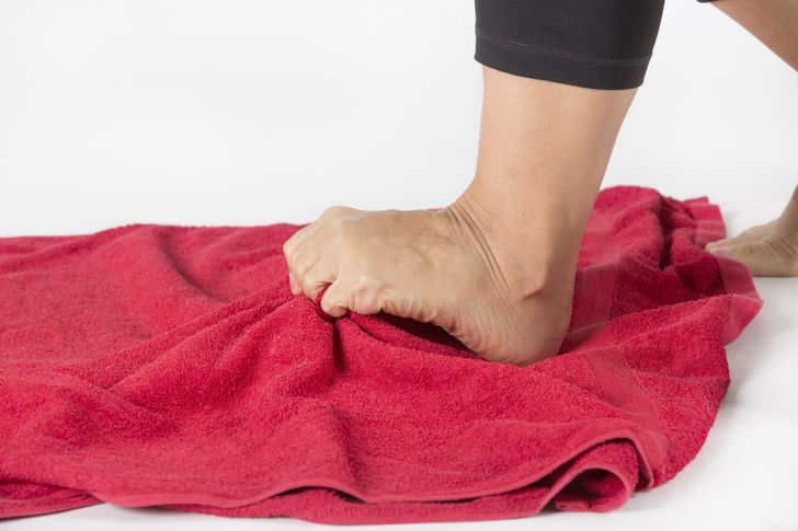 – Curl your toes around a towel and pull towards you and then straighten them. Do 5-10 repetitions.