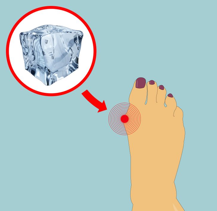 Ice can reduce pain and inflammation in the bunion. Wrap a couple of ice cubes in a cloth and place them in your bunion. Don’t press them too hard. Hold for 15-20 minutes.