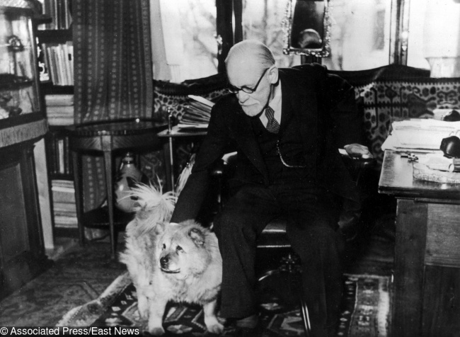 A faithful dog helps Freud at work