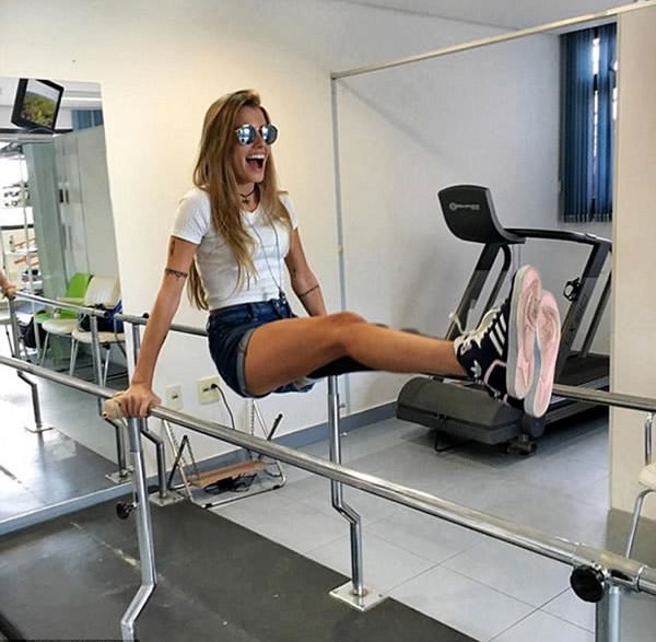 She continues to wear shorts and bikini, proudly showing her prosthetic limb.