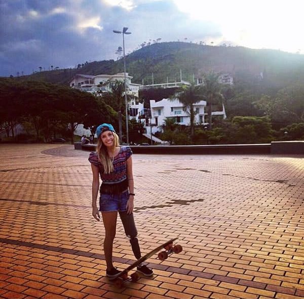 The amputated leg doesn’t stop her from, modeling, exercising, swimming, skateboarding…