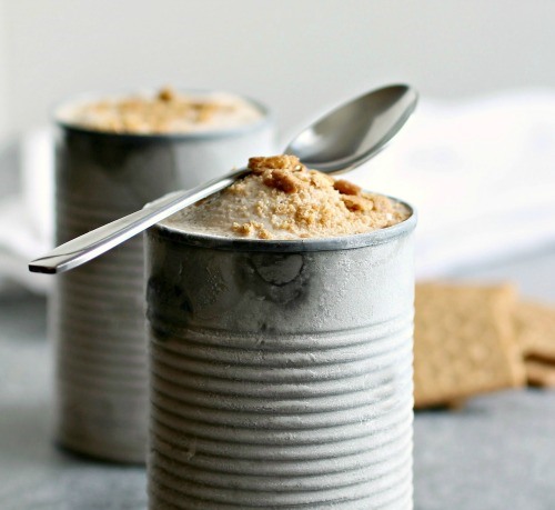 Place the Greek yogurt, frozen bananas, peanut butter, sweet condensed milk and salt in a blender. Blend until smooth. Place in a container and into the freezer. To serve, crush some Graham crackers and add them on top of your peanut butter and banana frozen yogurt.