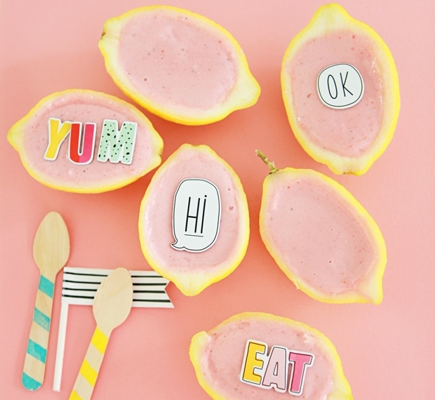 4. Strawberry Frozen Yogurt in Lemon Bowls