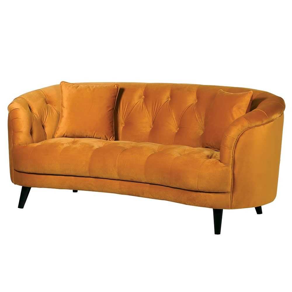 The three-seater saves you in space. It is polyester and comes in a black finished birch leg for stability. It has mustard finishing with button detailing.