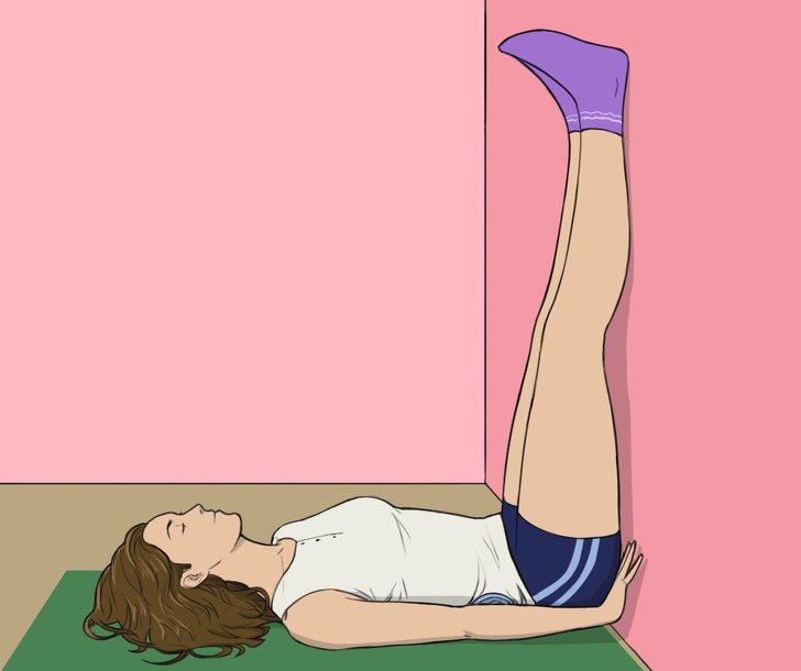 Pick a comfortable spot near a wall and place a pillow under your lower back. Lift your legs up and stretch them along the wall. Your hands should be placed beside your body and relaxed. Stay in this position for 20 minutes.
