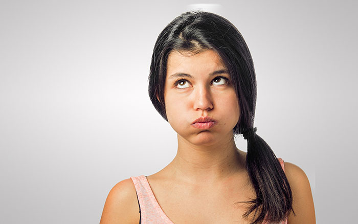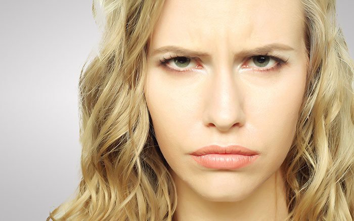 Place your index fingers on the outer corners of your brows and your middle fingers against your inner corners. Apply some pressure with your fingers and bring your brows down. Make a frown. Hold for 2 seconds, then relax. Do 8 reps.