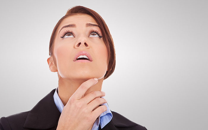 Look up and stretch your neck. Push your tongue against the top of your mouth. Use your index fingers to pull the skin on your neck downwards. Hold for 25 seconds. Get back into starting position and repeat again.