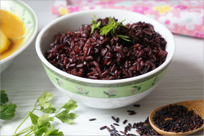 Black rice contains high amount of dietary fibers and less amount of sugar that help in maintaining the blood glucose levels.