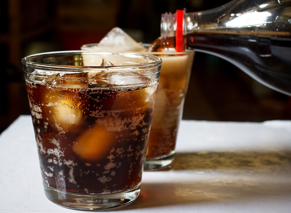 Soda like coffee contains caffeine, which makes it dehydrating. Any soda drink also contains artificial sweeteners that can cause cramping, diarrhea and bloating.