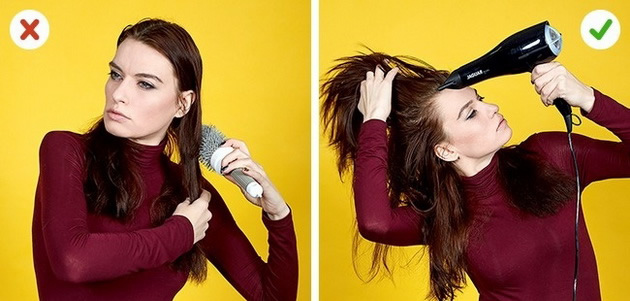 1. Use your fingers when your blow-drying your hair instead of a brush.
