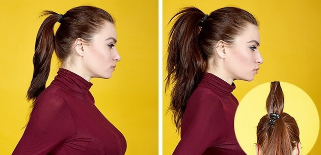 2. To increase the volume of your ponytail, place a hair clip and cover it with hair.