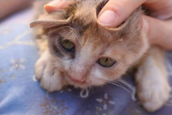 No one bothered to help this poor, little disfigured kitten wandering around the streets of Istanbul. People were too frightened to look at the cat because it looked terrifying. Luckily, one brave 7-year old girl found the kitten and the rest is history….