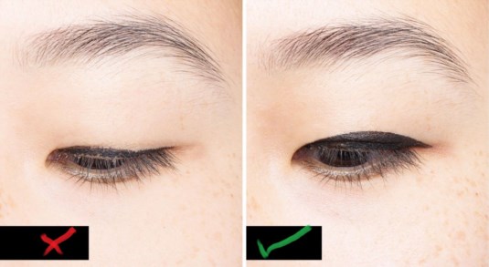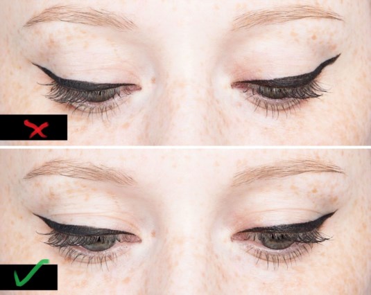 The solution: Start applying the liner the closest to your lash line. When you’re done, apply one more coat of liner to make sure there’s no space between your liner and lashes.