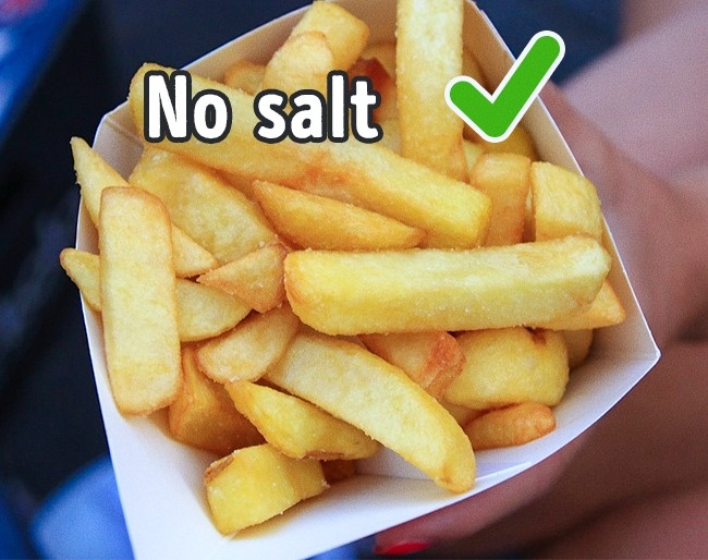 French fries get salted right after the batch is cooked. If you order without salt, the staff will make a fresh, new batch just for you.