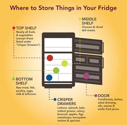 Certain parts of the refrigerator are colder than others while others like the shelves on the door vary in temperature. It’s very important to store highly easy spoiling foods that require storage in the coldest areas with stable temperature in the fridge to avoid spoilage.