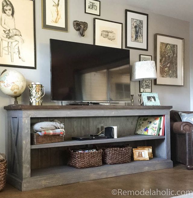 Here’s another from Ana, and this is perhaps the best of the bunch. This TV stand is tall, as opposed to wide like many of the others on this list, making it great for slightly smaller rooms, or rooms with awkward layouts. By now you probably know what to expect over at Ana’s site, so head on over and see what you need, and what you need to do.