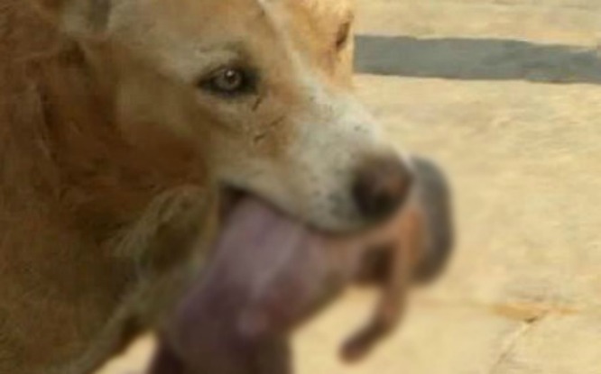 The picture from Saudi Arabia that went viral shows a stray dog carrying a newborn baby in his mouth.