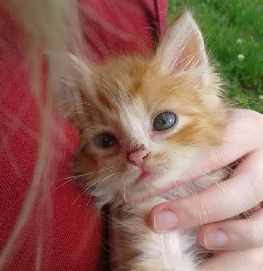 A family was having their everyday walk in the woods, when they heard a little noise. That noise turned out to be a little ginger kitten, alone without a mother. The little baby instantly stole their hearts and they were on their way home with their newest family member.
