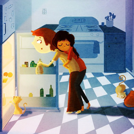 Real and true love means caring, comforting, taking long and romantic walks, holding hands. A creative artist from San Francisco creates amazing illustrations showing that every moment spent with our loved can be wonderful and magical. In her “Everyday love” series, Nidhi Chanani shows couples dancing, cooking, listening to music, comforting each other and hugging.