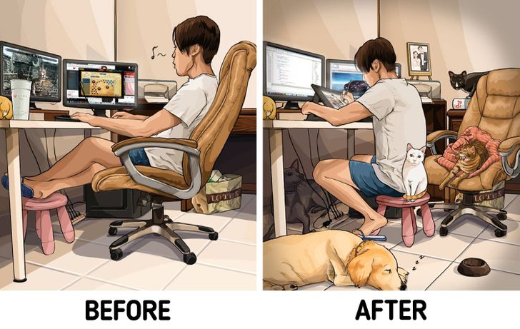 An artist from Taiwan illustrates the changes that happen in our lives when we get a pet.