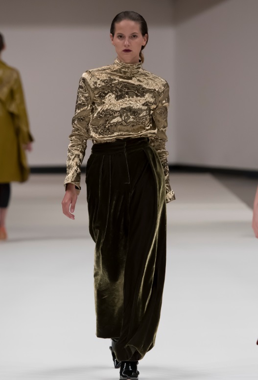 The designer served up graduation 16 with four other kids at the University of applied Arts based in Austria. Plenty of his elegant romance with high collar heavy-velvet blouses, shiny skirts, ruffled samt panties with macraméd bibs, and a tiered, non-embroidered high-neck texture of velvet gown in earthy colours. But he toughened up the frills with his helpers a bit with an element of snake-shin playful war: Think not about the woman- or cheetah-printed snake-skin-fabric-sewing-satin, coats and collars; knitwear-patterned crochet knit tops; jacquard trousers covered in clovers and more vintage; and even an itty-bitty skirt covered in velvet.