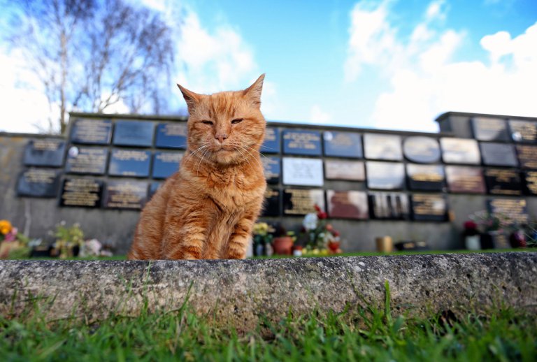 Barney, the ginger cat, spent 20 years giving comfort to people who were visiting their loved one’s graves. Unfortunately, Barney died of old age.