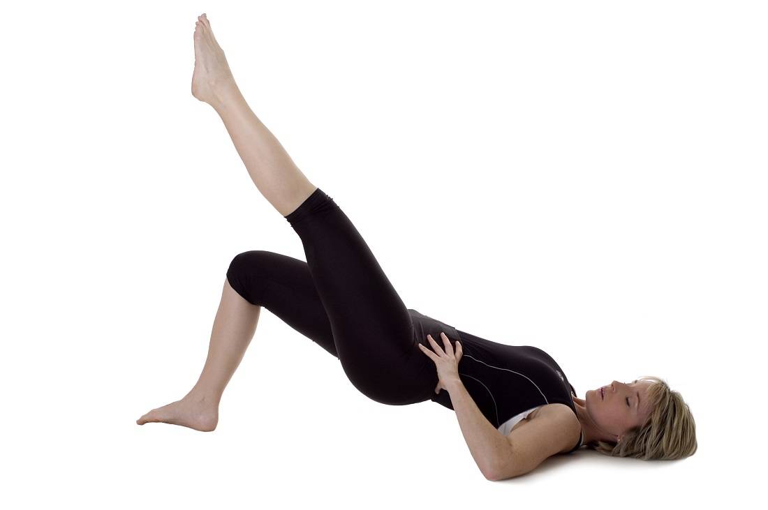 To strengthen your abs, lie on the floor, then contract your abdominal muscles. Raise one leg stretched out for about 10 cm from the ground. Your arms should be stretched along the body, but high on the ground. Hold this position for 30 seconds and repeat 10 times.