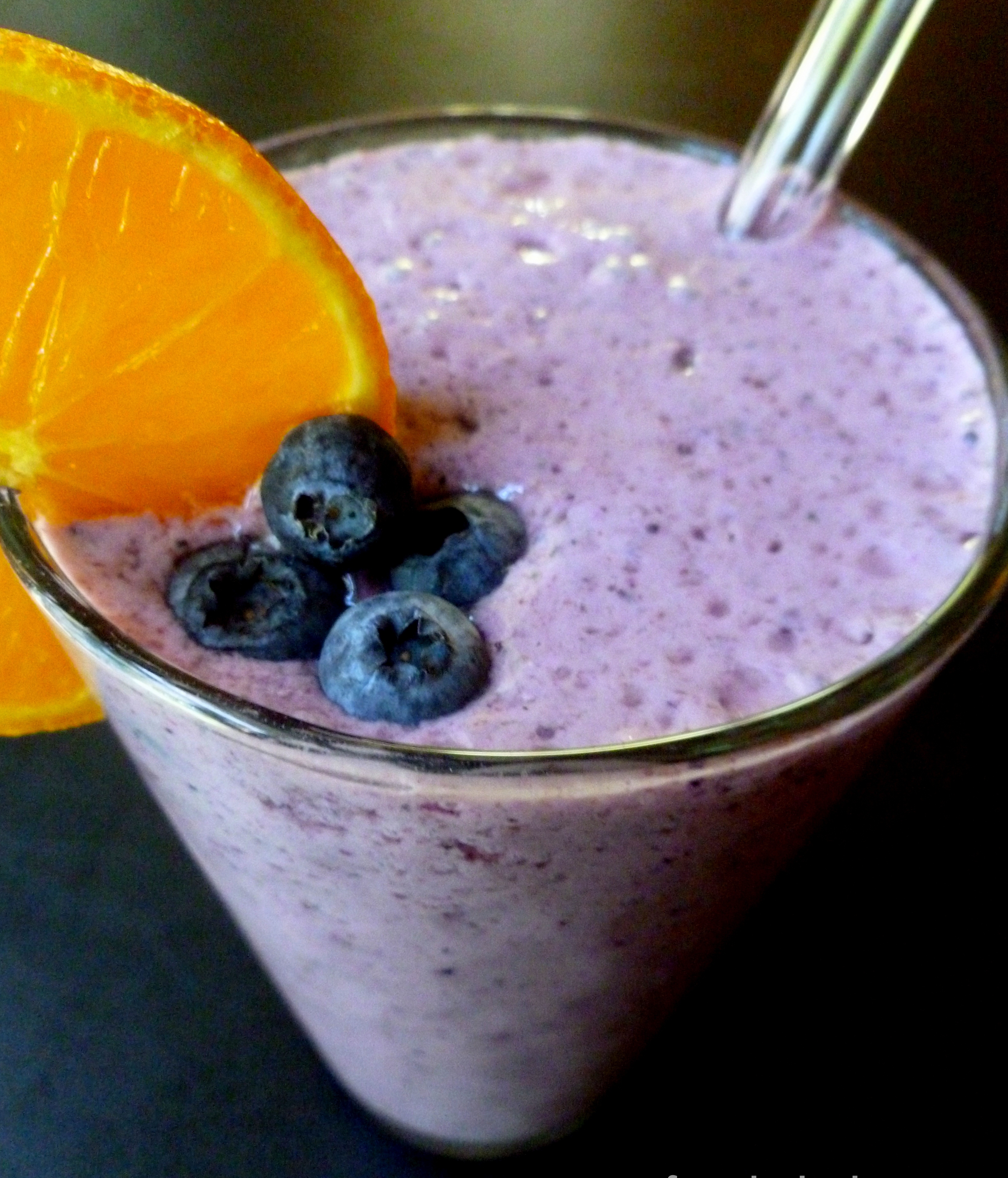 Blueberries and orange juice are wonderful and refreshing flavor duo. Surprise your family with a berry-yogurt smoothie breakfast! Serve smoothies with yummy toasted bagels topped with non-fat cream cheese for a change from cereal and juice.