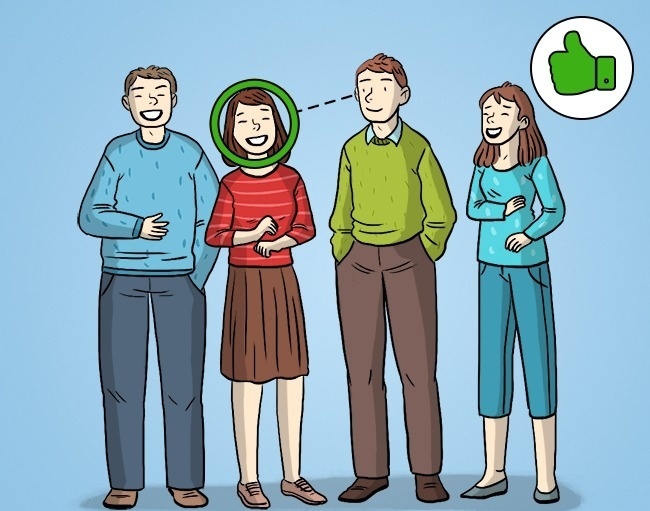 6. When a person tells a joke, he’s looking at the person he’s most interested in, waiting for a reaction.