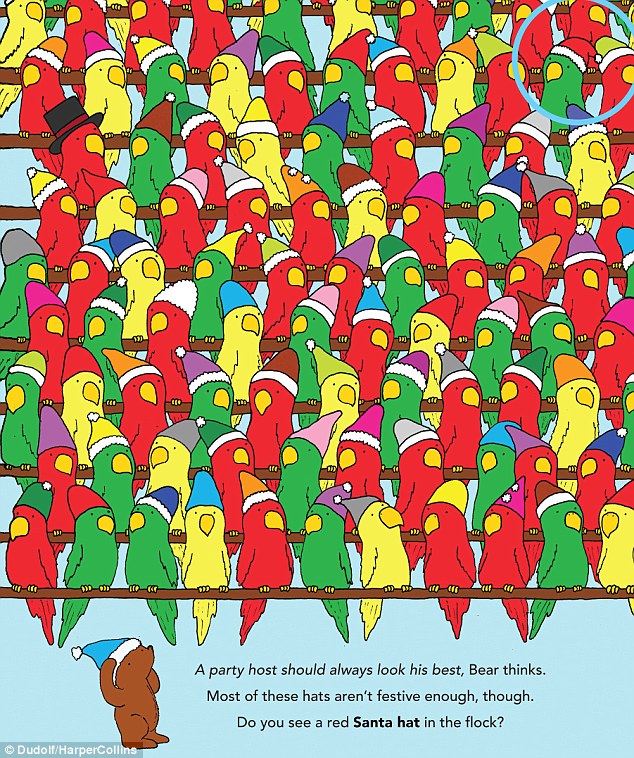 Dudolf’s latest puzzle is featured in his new book, Bear’s Merry Book of Hidden Things, which uses colorful illustrations and seek-and-find puzzles.