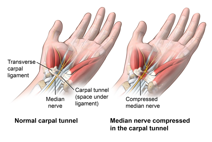 Carpal tunnel syndrome is numbness, tingling, weakness, and other problems in your hand because of pressure on the median nerve in your wrist.