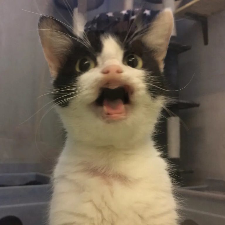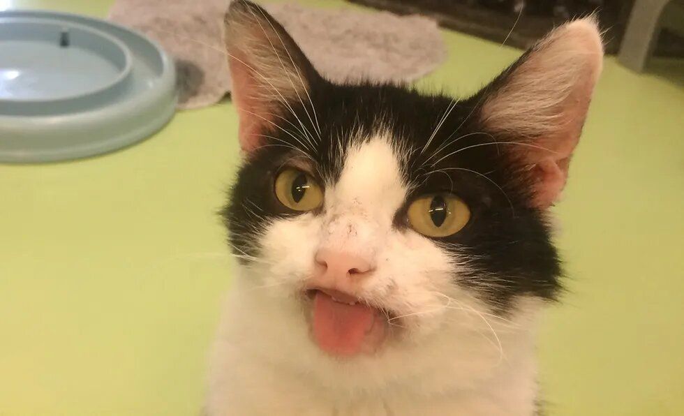 A couple of weeks later, the kitten grew into a healthy young cat and found a forever, happy home. Nala has also blossomed, thanks to the volunteers at the shelter. She adores people and smiles at everyone she meets. She has a permanent smile on her face because of a cleft lip and has a skin condition that requires a special diet. She only needs hypo-allergenic food.