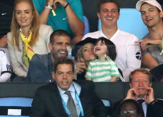 At the significant sports event, attended Gisele Bundchen with her husband Tom Brady, David Beckham with his three sons, Rihanna, Adriana Lima, Alessandra Ambrosio, Gerard Butler, Shakira and Pique with their small Milan, Ashton Kutcher…