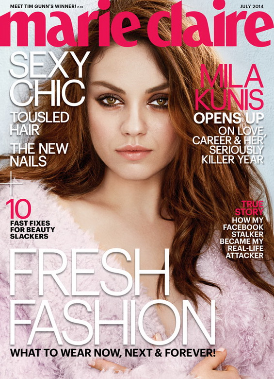 Mila Kunis is the new star of the July issue of “Marie Claire”. The charming actress, who is pregnant with her first child from Ashton Kutcher, posed in a stylish design creations.