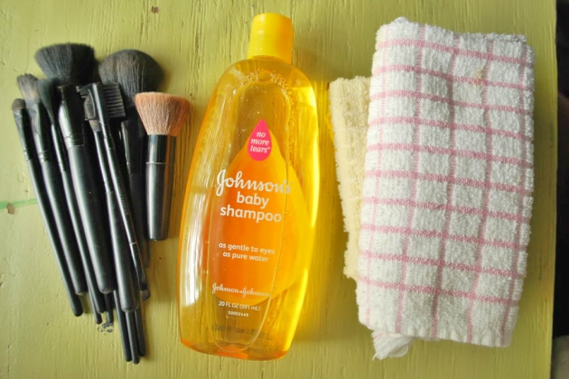 Use a natural baby shampoo free of chemicals, fragrances and preservatives. You can also mix some shampoo with coconut oil. Soak a cotton ball in this solution and gently wipe away your makeup.