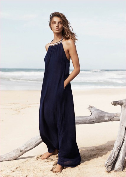 The Canadian model, also face of popular cosmetic brand Lancome touches the beach perfection wearing dresses in light style and knitwear which is perfect for a sand, sun and water. Photography by Josh Olins; styling by Alastair McKimm.
