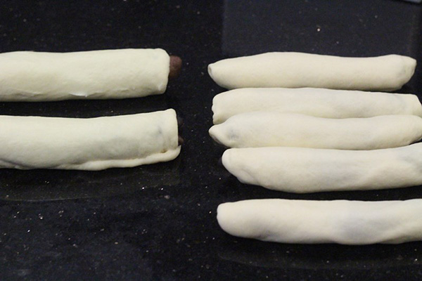 Take the plain dough and roll it enough to cover the chocolate dough (fully cover).