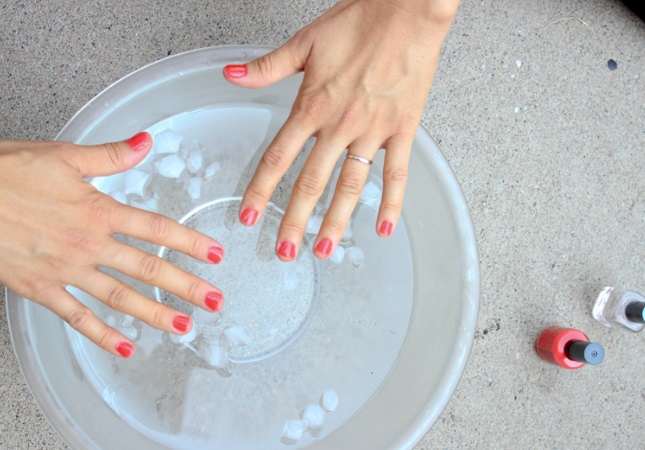 • Wait 3-4 minutes before submerging your nails in the icy water.