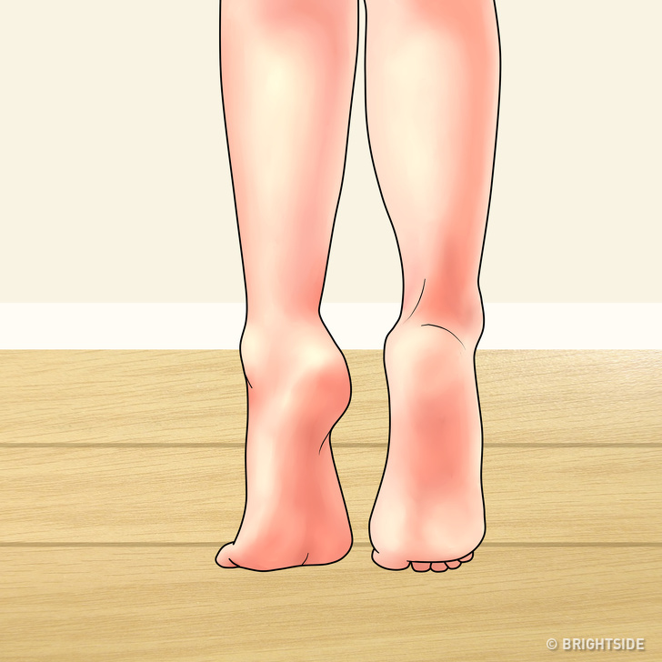 2. Put your legs together and stand straight. Stand on the tip of your toes and hold this position for 30 seconds. Place your feet flat on the floor. Do 5-10 reps.