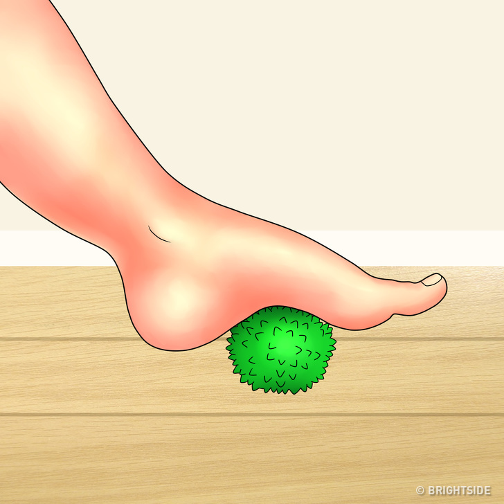 4. Place a tennis ball under your foot. Roll the ball all over your feet, from heel to toe. Do 50 repetitions with each leg.