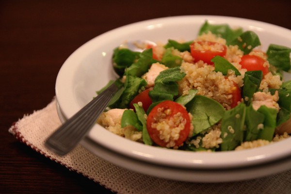The chicken breast is the leanest part of the chicken meat and it is a great source of protein. Quinoa is a gluten free grain that contains more protein than any other grain or rice.