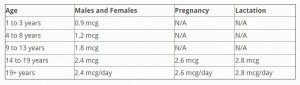 Recommended Dietary Allowance (RDA) for vitamin B12