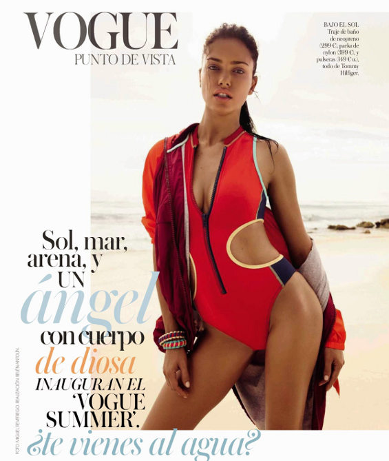 Adriana Lima is a modern goddess on the beach in the new editorial of “Vogue” Spain. The attractive Victoria`s Secret angel with sensational look, full of emotions seduces on the cover of the magazine.