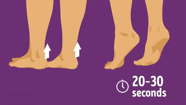 Stand on tiptoes for 20-30 seconds. Repeat 10 times.