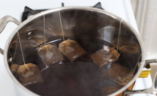 Fill the plastic tub with warm water and add the tea bags. Let the bags sit for 15-20 minutes and check if the water is cooled before you dip your feet in. Soak your feet for 20-30 minutes. Do this every day to get rid of the bad odor.