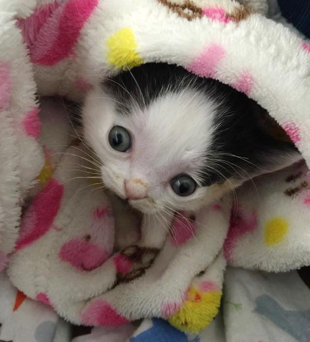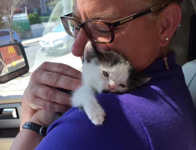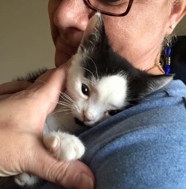 Zeke was located in a shelter home in Texas, but they couldn’t give him the treatment he needed. Luckily, Lisa came all the way from New York to help the little kitten.