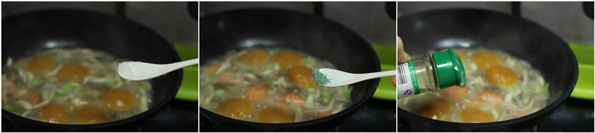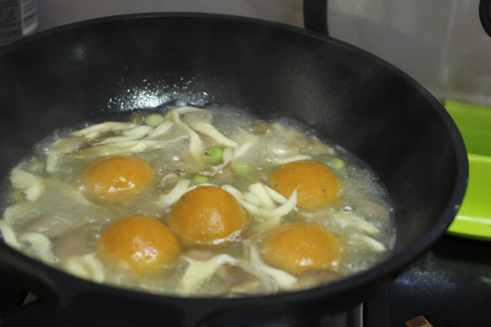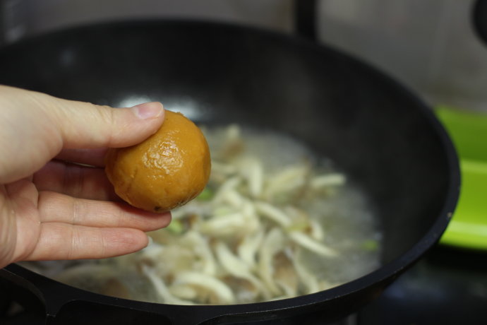 When the stock comes to the boil, add the steamed sweet potato balls.