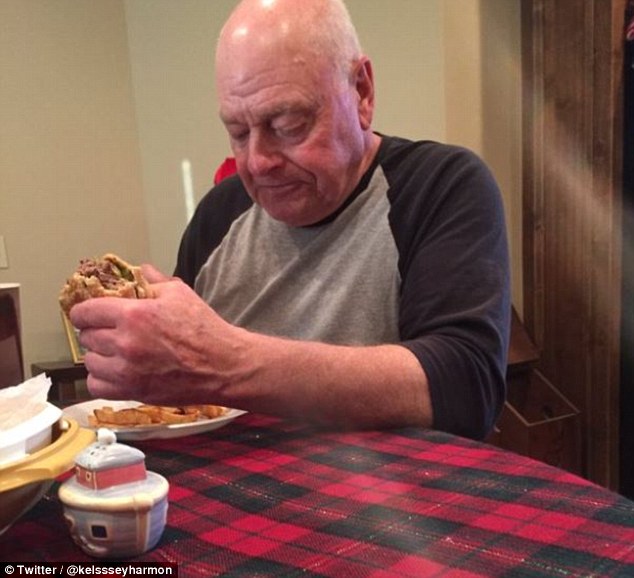 Kenneth Harmon from Washington, Oklahoma, has made 12 burgers for his 6 grandchildren and his granddaughter Kelsey Harmon was the only one who showed up.