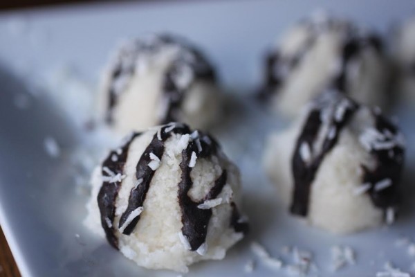 Put all ingredients in a blender. Blend until you get an even mixture. Remove the mixture from the blender form into the desired shape. Decorate your cookies with shredded coconut, cocoa powder, crushed nuts, or melted chocolate. Leave them in a freezer to cool and then enjoy this delicious dessert.